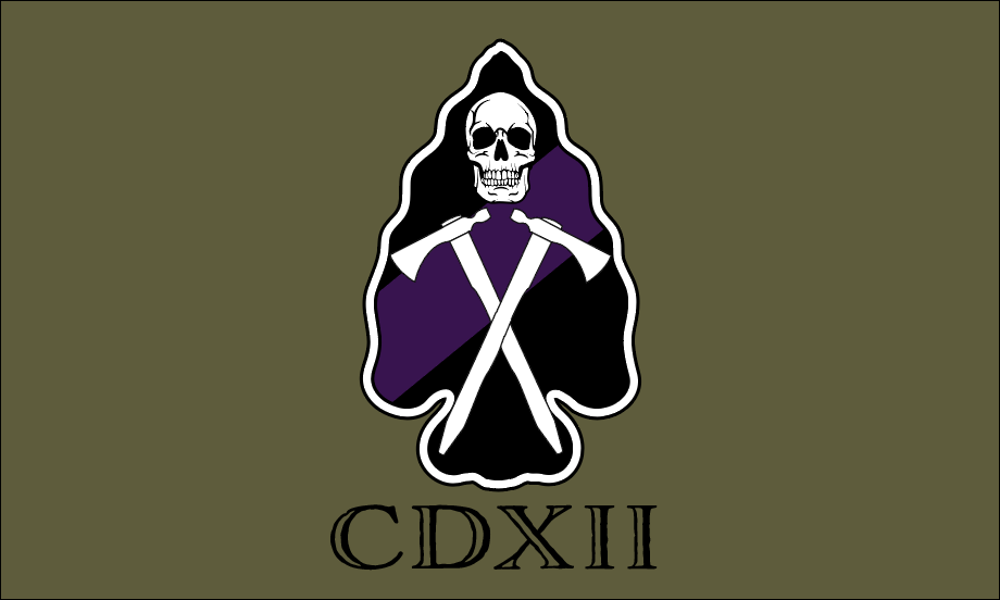 412th CA BN (A) Moto flag. One-sided, olive green.