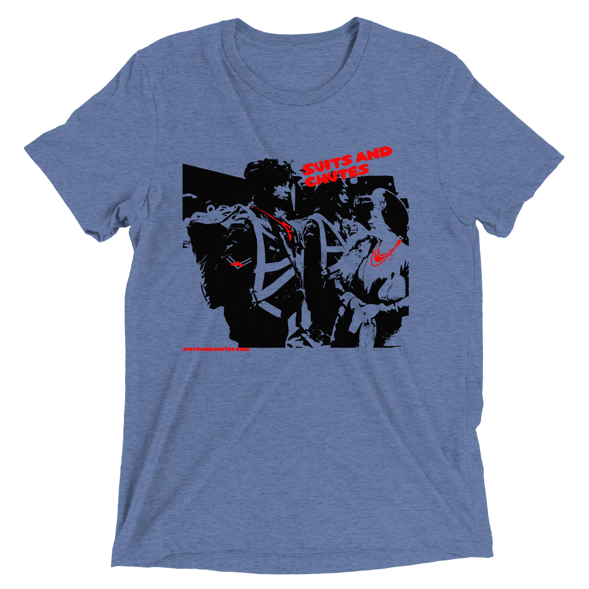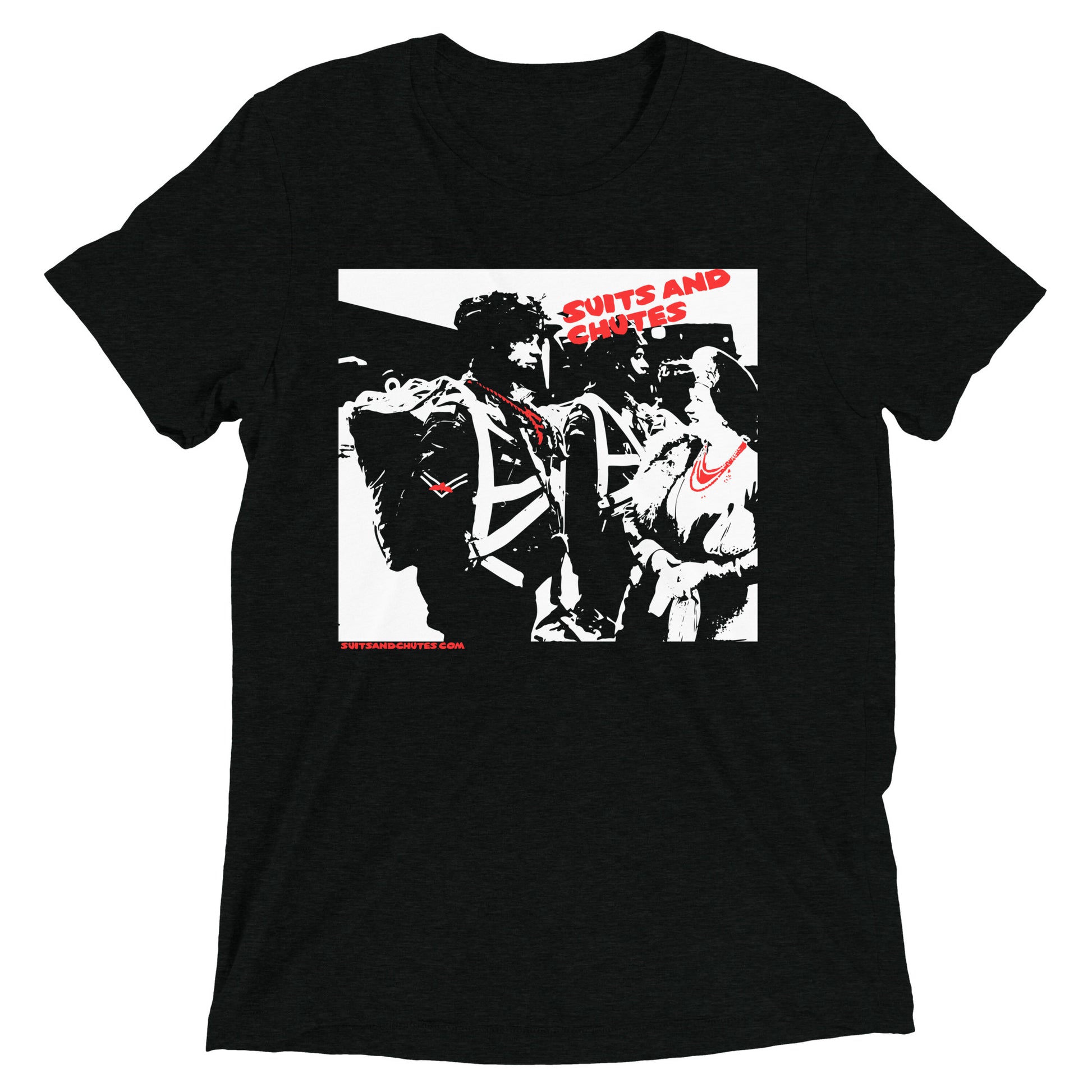 This shirt pays tribute to the iconic British Paras. A spunky paratrooper is talking to the Queen Mum a few weeks before D-Day. Both are dressed to kill.