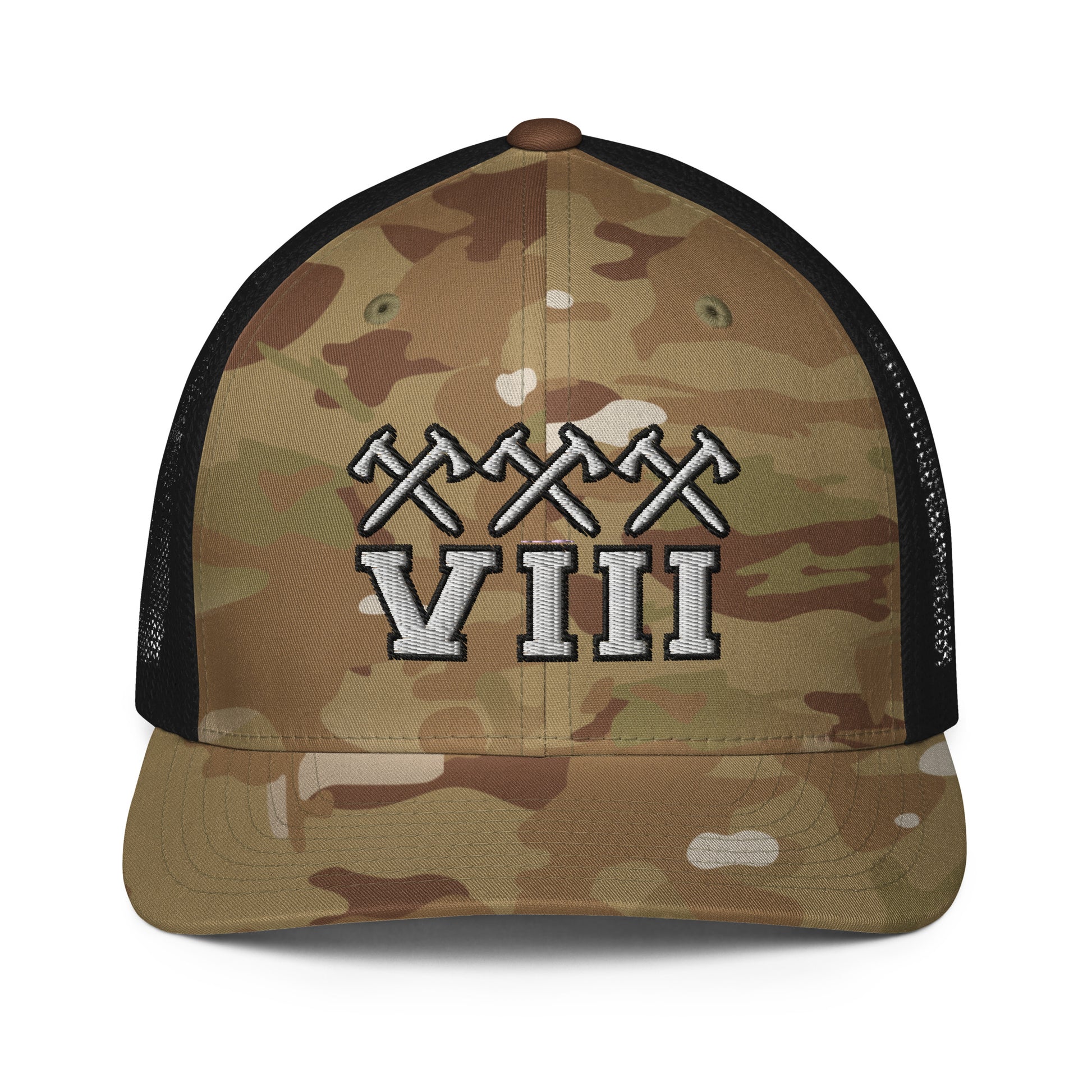 Available in black, black/white, caramel brown, and multicam. One size fits all flexfit hat.